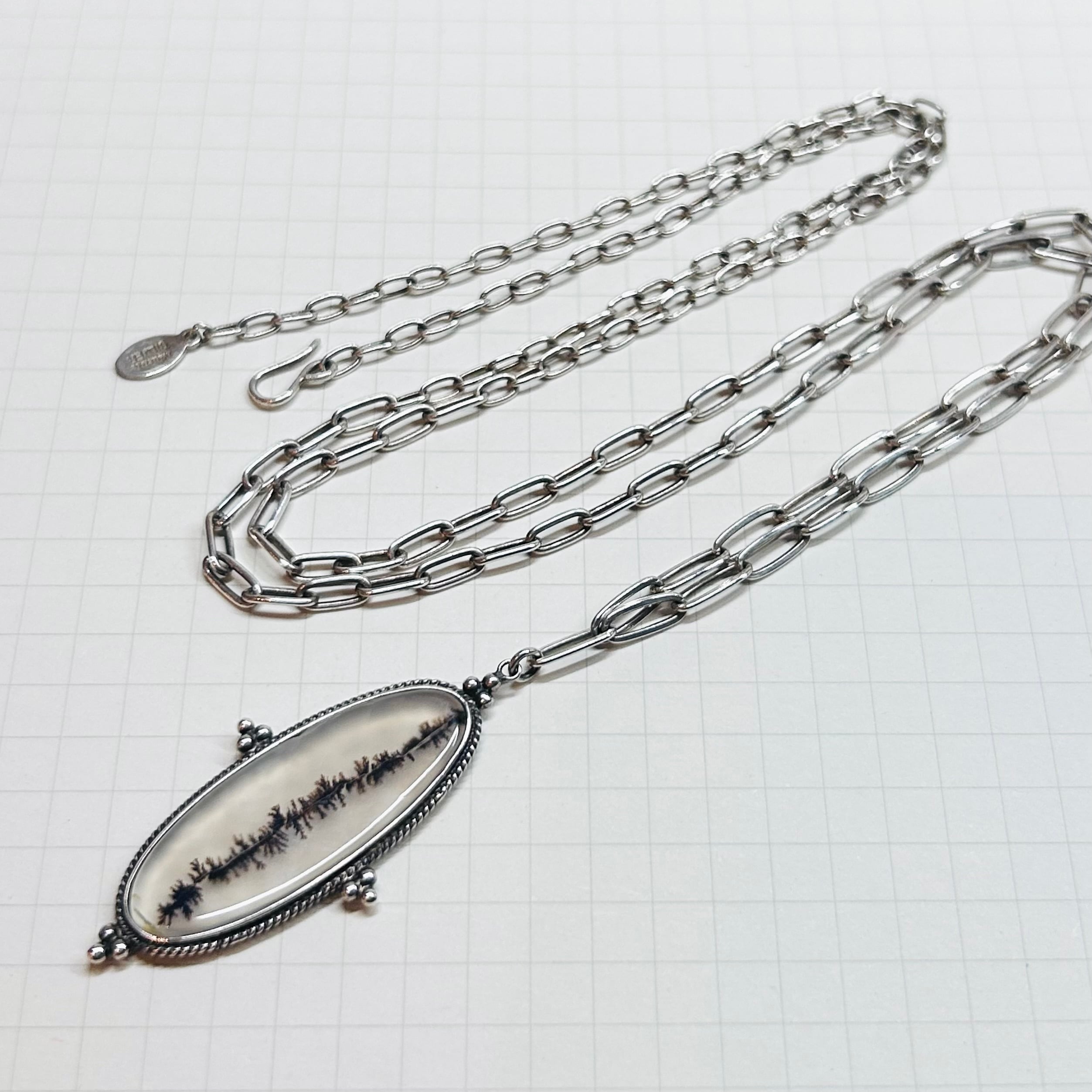 自然が生み出す神秘的な模様が特徴のデンドリテックアゲート、同じ模様のない一点物のネックレスです。